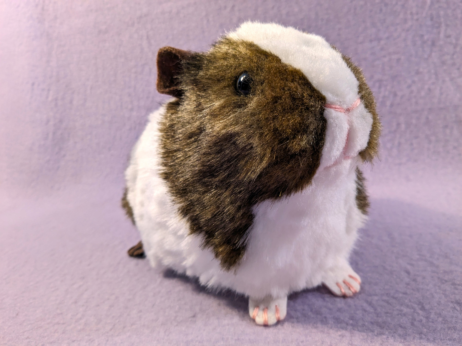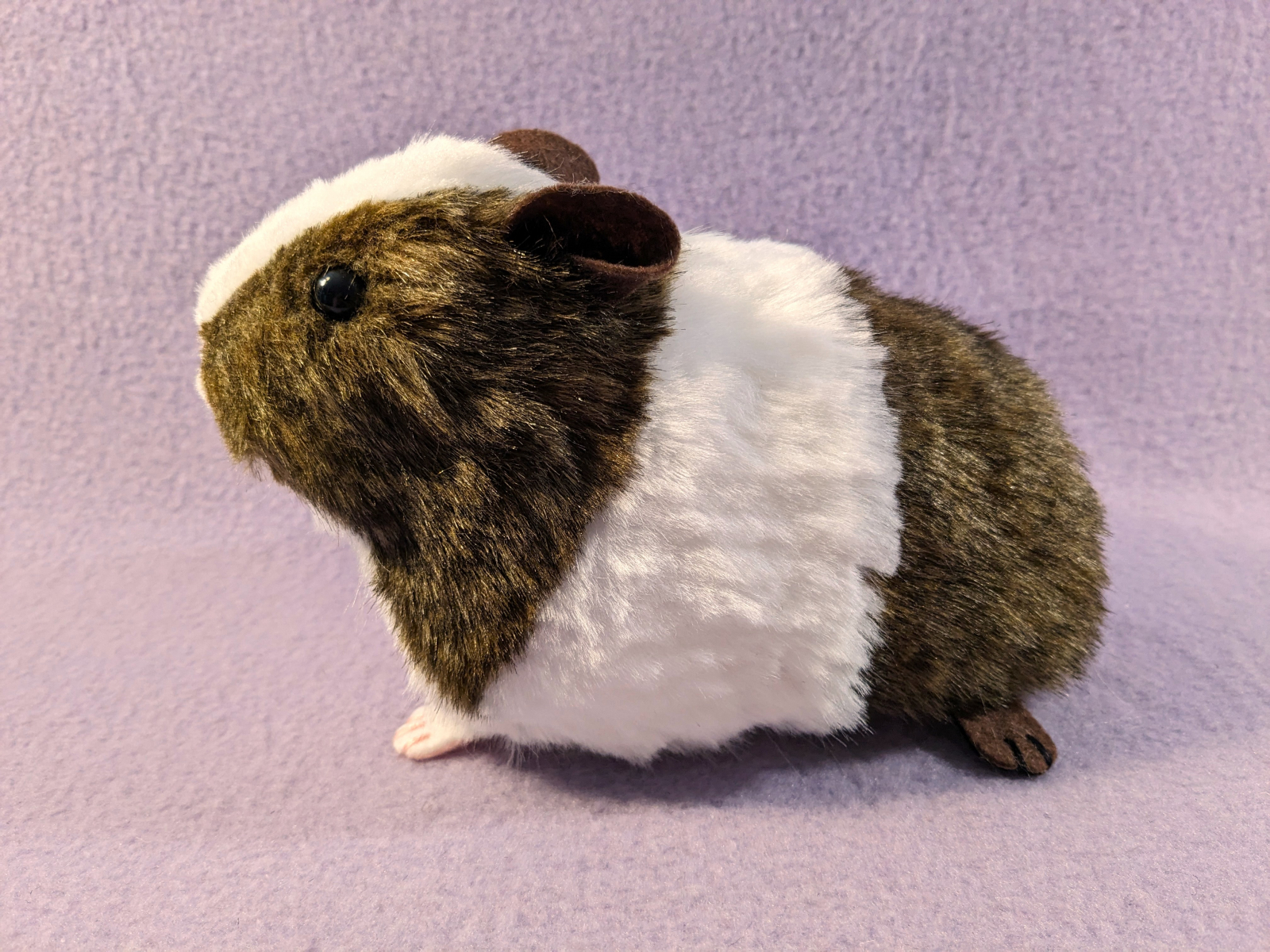 This cute guinea pig plushie is created from an original pattern. Each plushie is made with soft faux fur and measures about 8.5 inches from nose to fuzzy butt. They feature details just like a real guinea pig, with 4 toes on the front feet and 3 toes on the hind feet, and the little ears can either stand up or fold down.