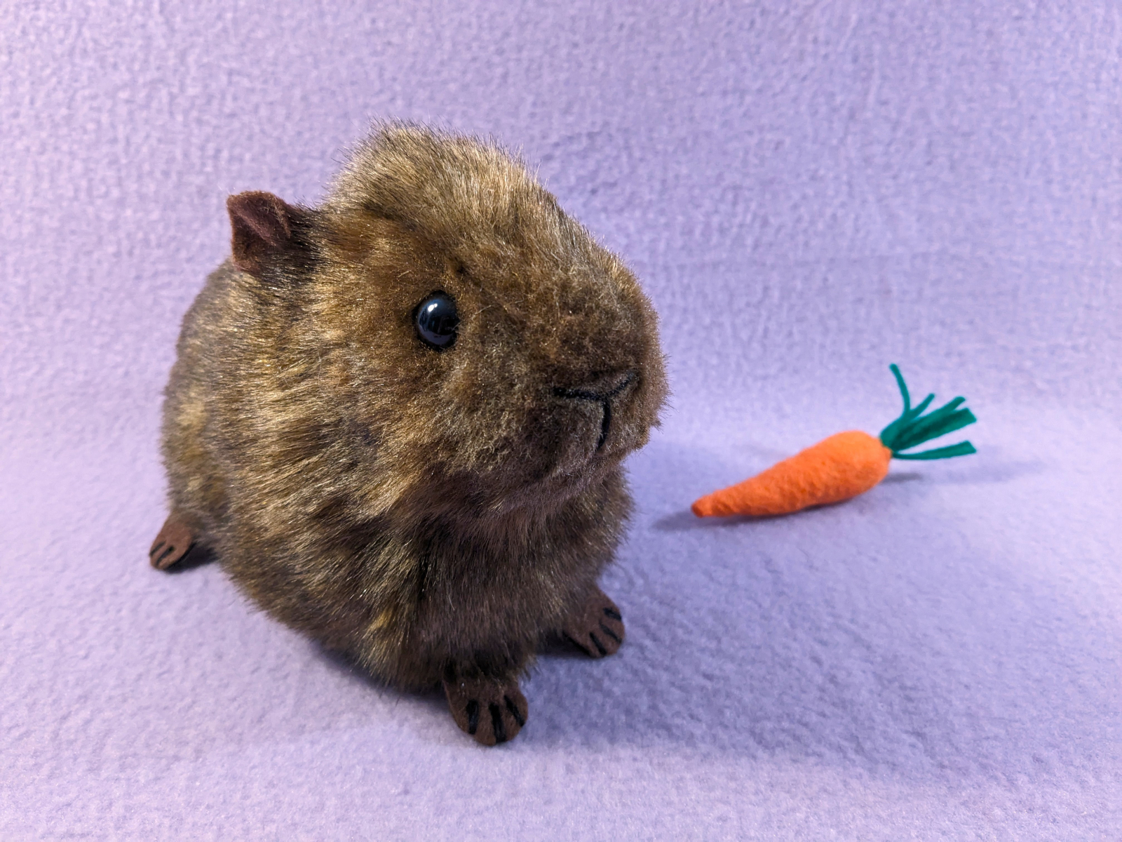 This cute guinea pig plushie is created from an original pattern. Each plushie is made with soft faux fur and measures about 8.5 inches from nose to fuzzy butt. They feature details just like a real guinea pig, with 4 toes on the front feet and 3 toes on the hind feet, and the little ears can either stand up or fold down.