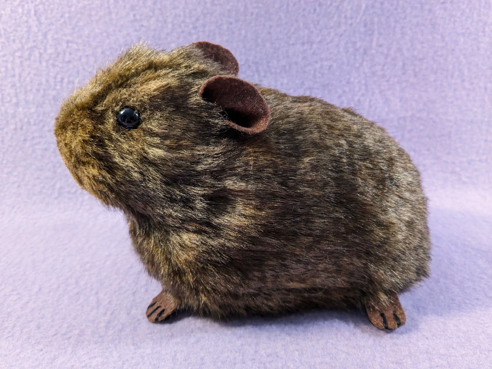 A large-sized guinea pig plushie with agouti brown fur. It has brown ears and brown feet. You can add a note if you'd like the ears or feet in a different color, otherwise it will be made with the same colors as shown in the photos.