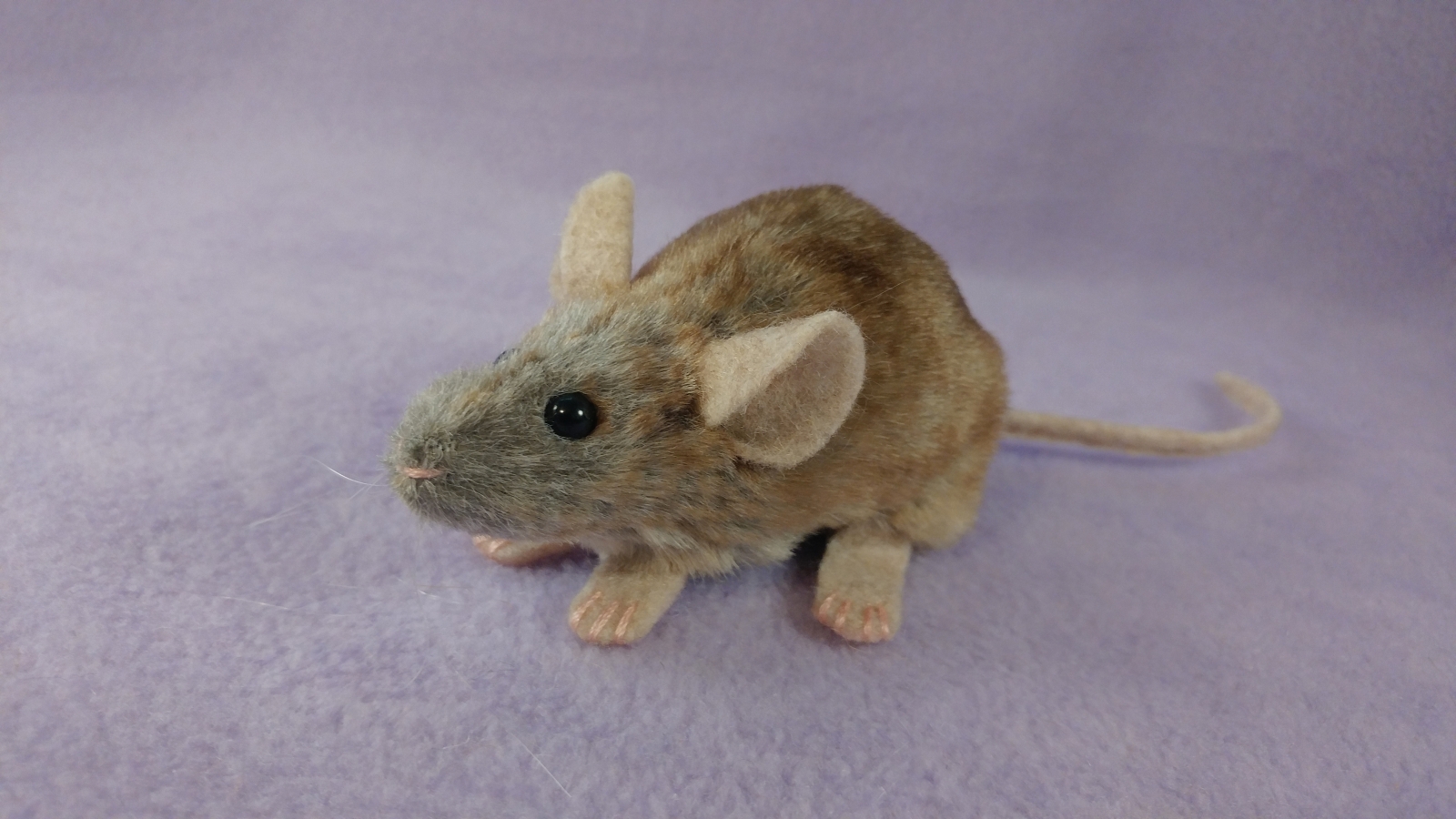This cute, fuzzy mouse plushie is created from an original pattern. Each plush is made with soft faux fur, and measures about 4 inches from nose to fuzzy butt. They feature details just like a real mouse, with 4 toes on the front feet and 5 toes on the hind feet. The tail is approximately 5 inches long.