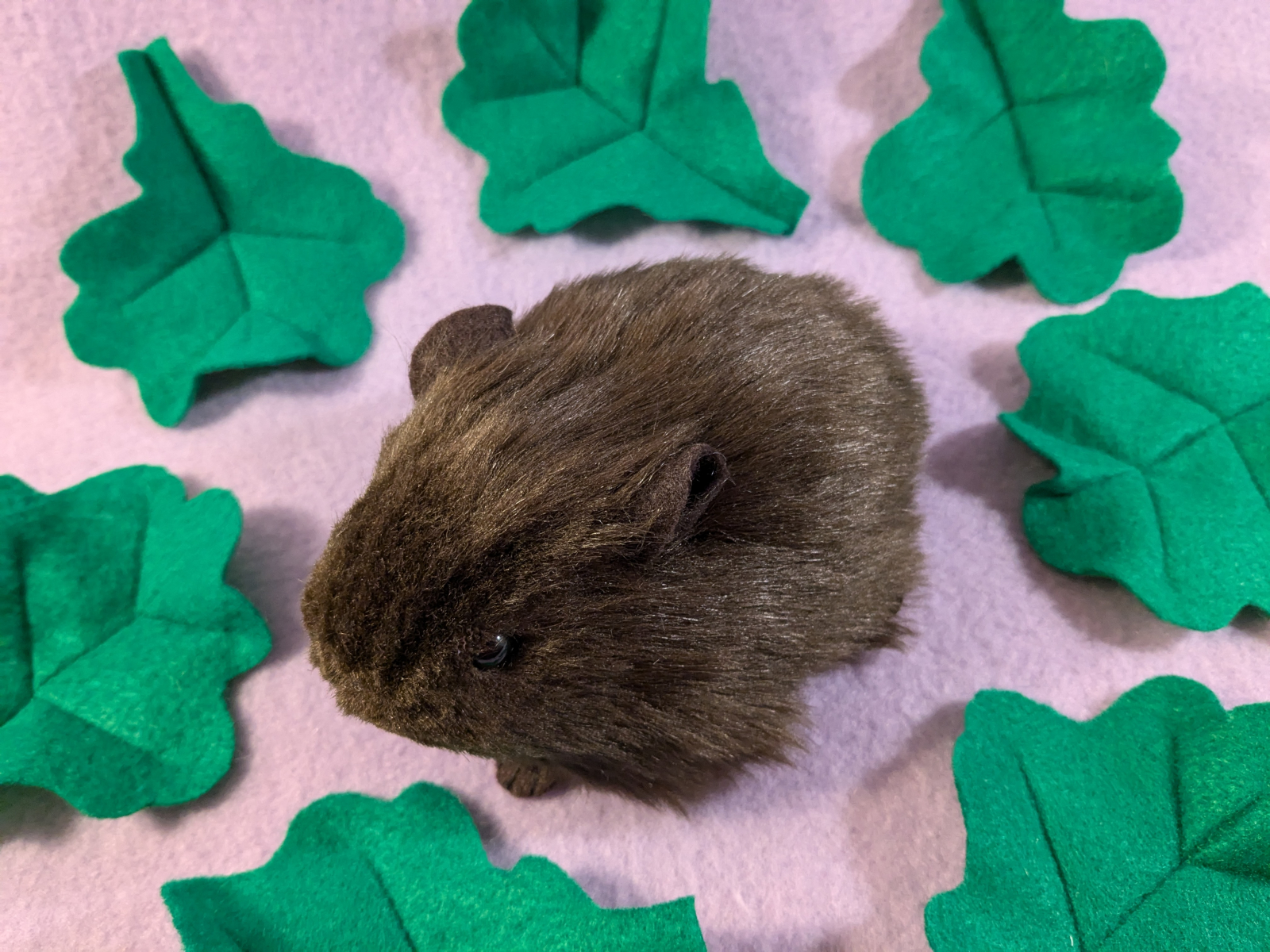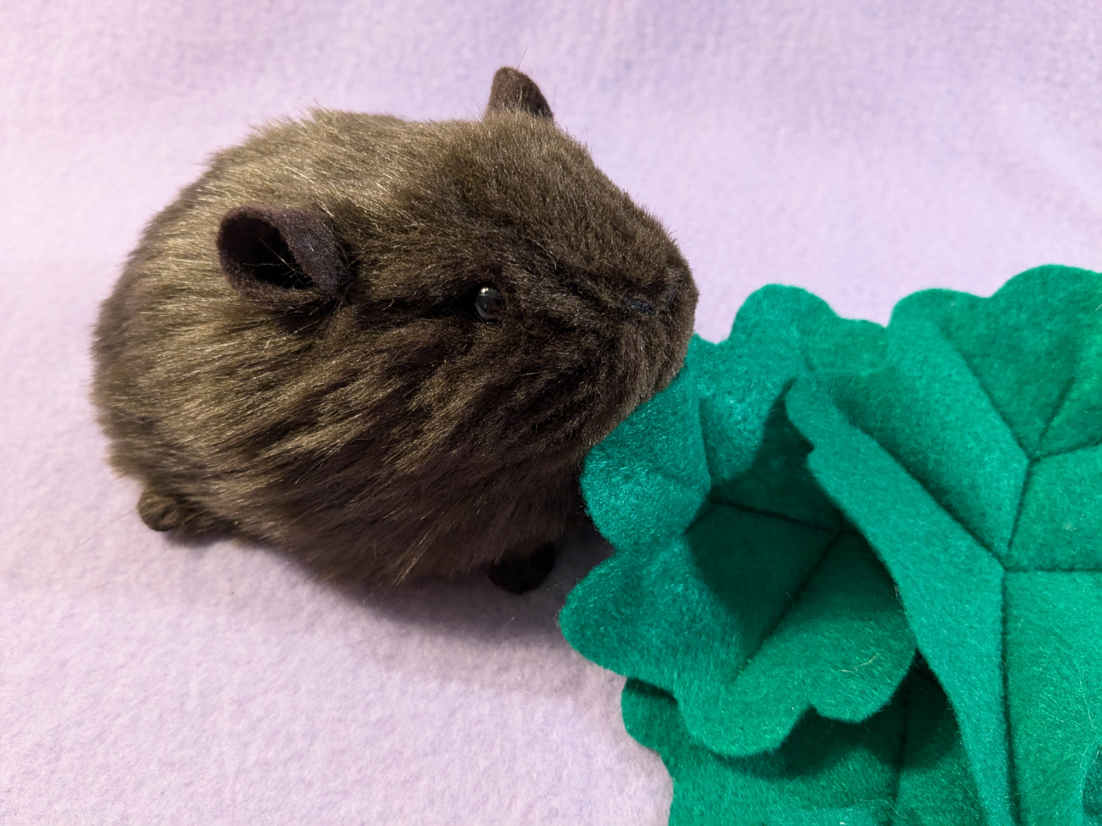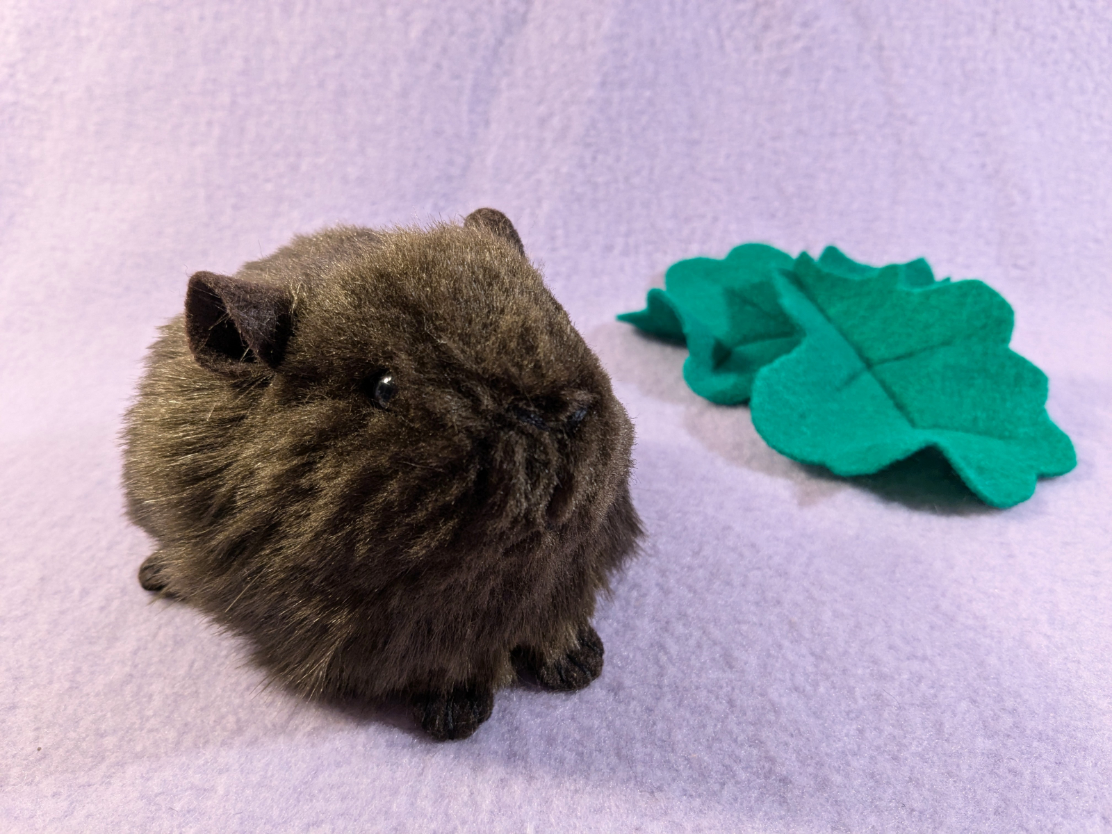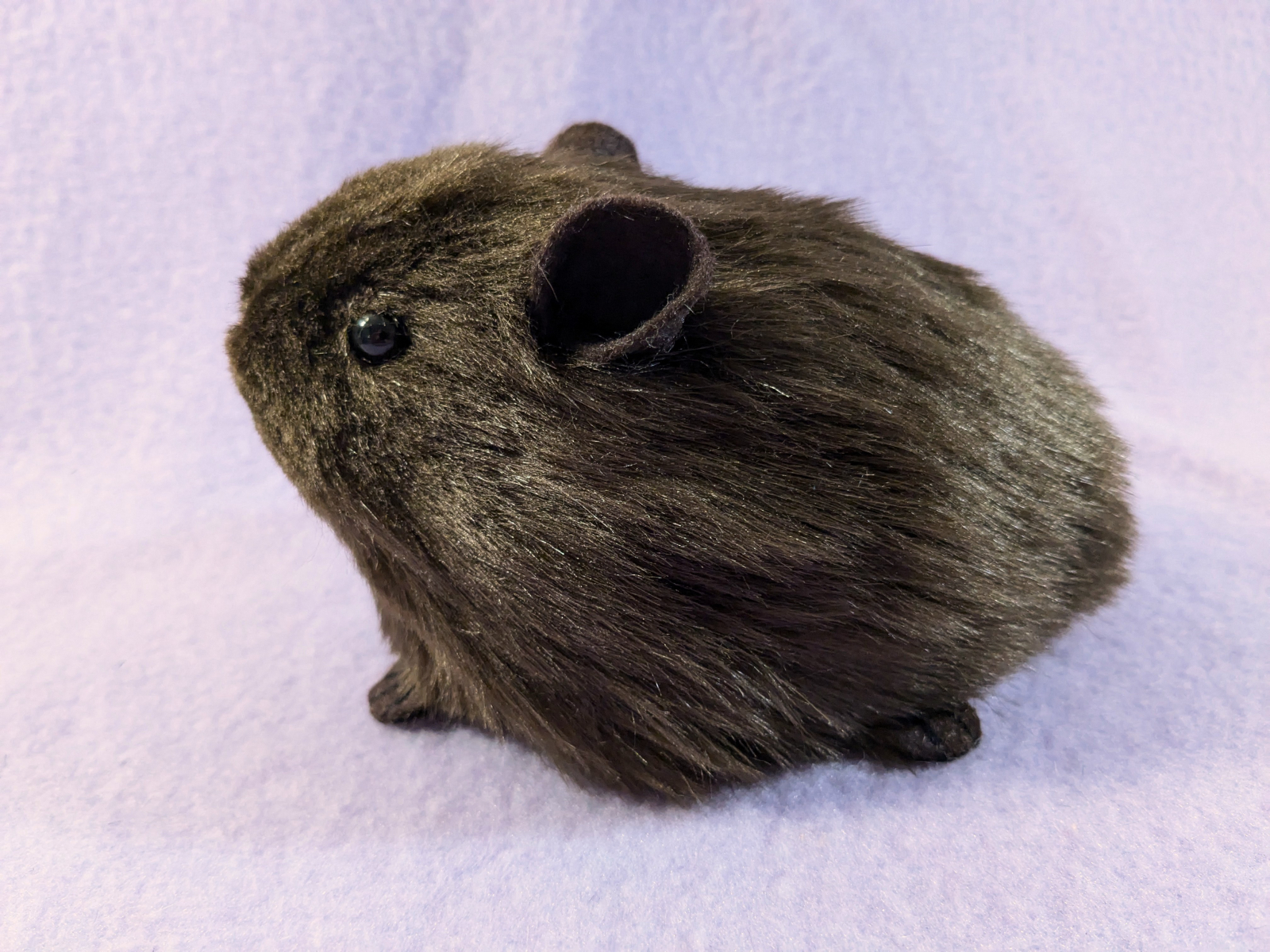 A small-sized guinea pig plushie with dark brown fur. It has brown ears and brown feet. You can add a note if you'd like the ears or feet in a different color, otherwise it will be made with the same colors as shown in the photos.
