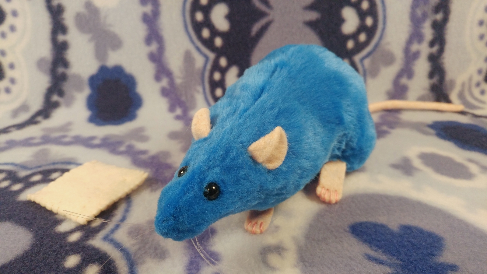 This cute, fuzzy rat plushie is created from an original pattern . Each plush is made with soft faux fur, and measures about 7 inches from nose to fuzzy butt. They feature details just like a real rat, with 4 toes on the front feet and 5 toes on the hind feet. The tail is approximately 7 inches long.