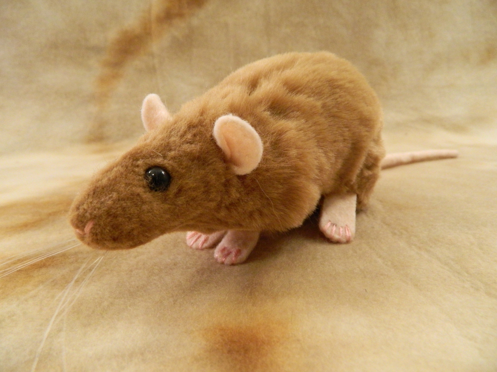 This cute, fuzzy rat plushie is created from an original pattern . Each plush is made with soft faux fur, and measures about 7 inches from nose to fuzzy butt. They feature details just like a real rat, with 4 toes on the front feet and 5 toes on the hind feet. The tail is approximately 7 inches long.
