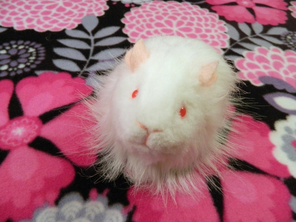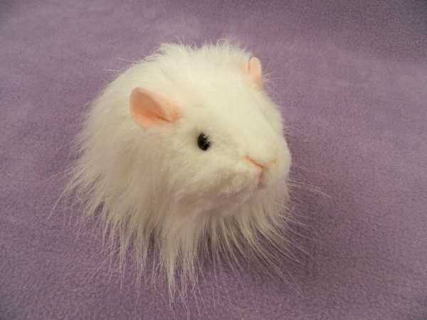 A small-sized guinea pig plushie with long white fur. It has pink ears and white feet. You can add a note if you'd like the ears or feet in a different color, otherwise it will be made with the same colors as shown in the photos.